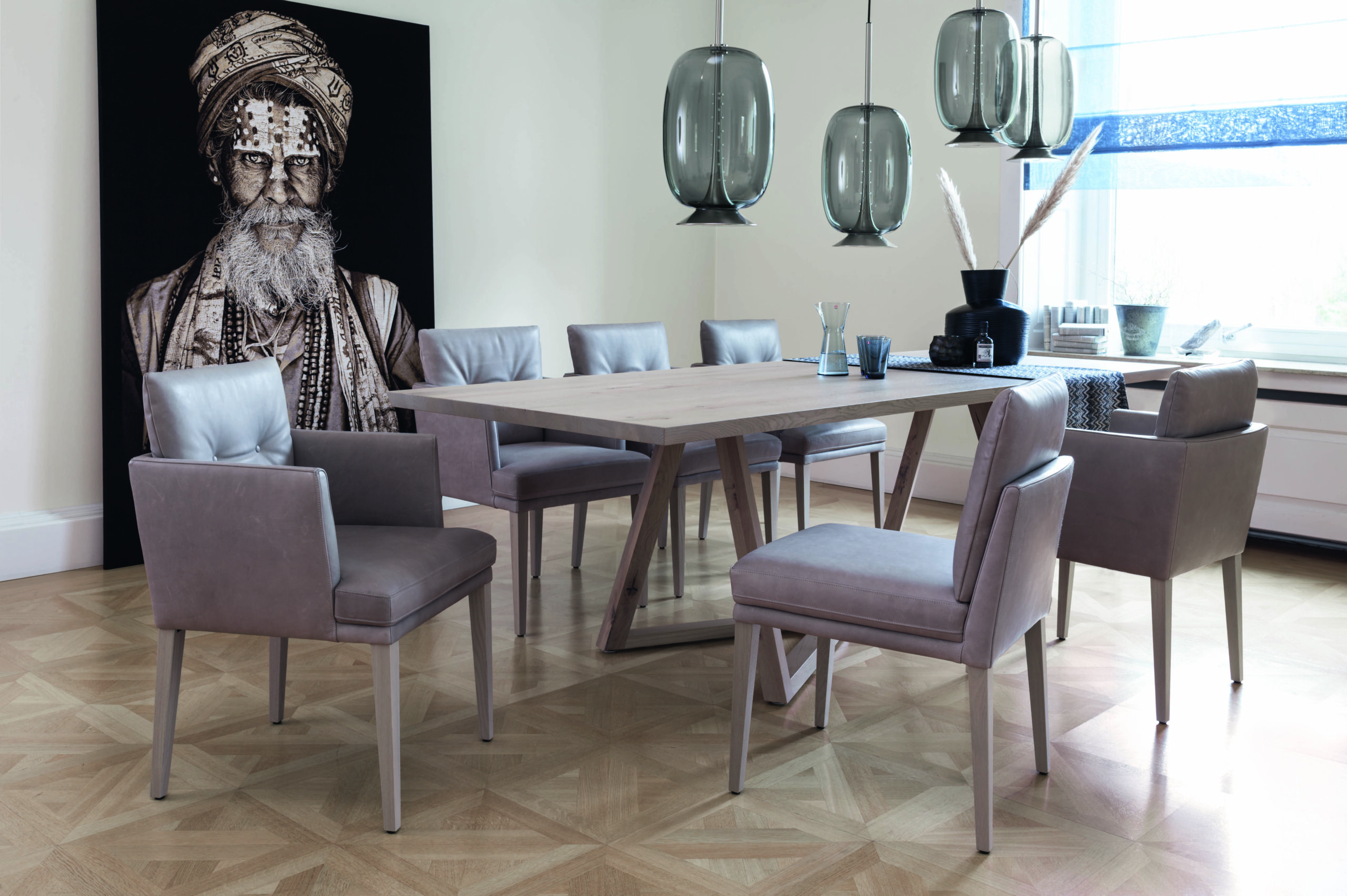 Passend zu den Sitzmöbeln lassen sich auch Tische und Leuchten zu einem stimmigen Raumkonzept kombinieren.